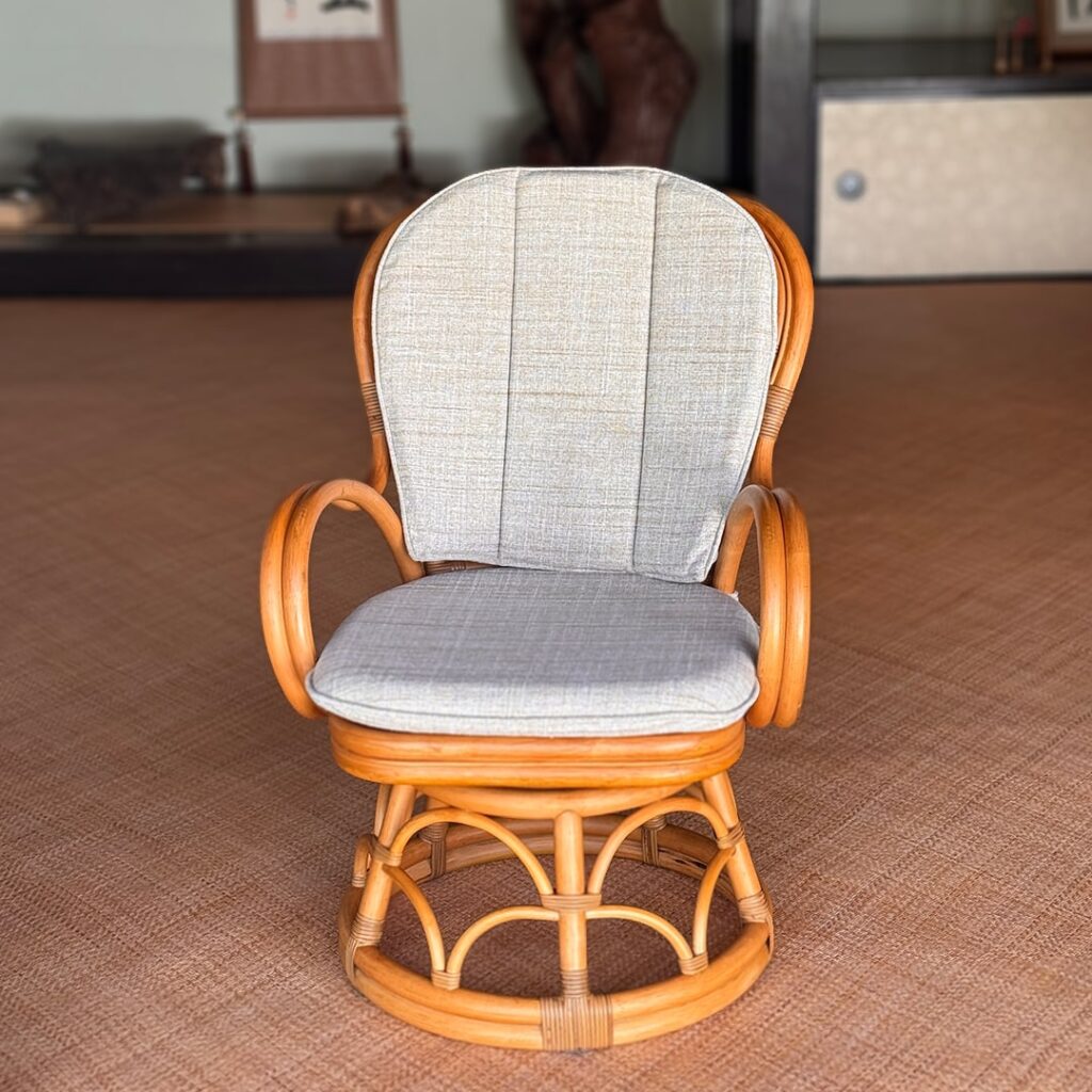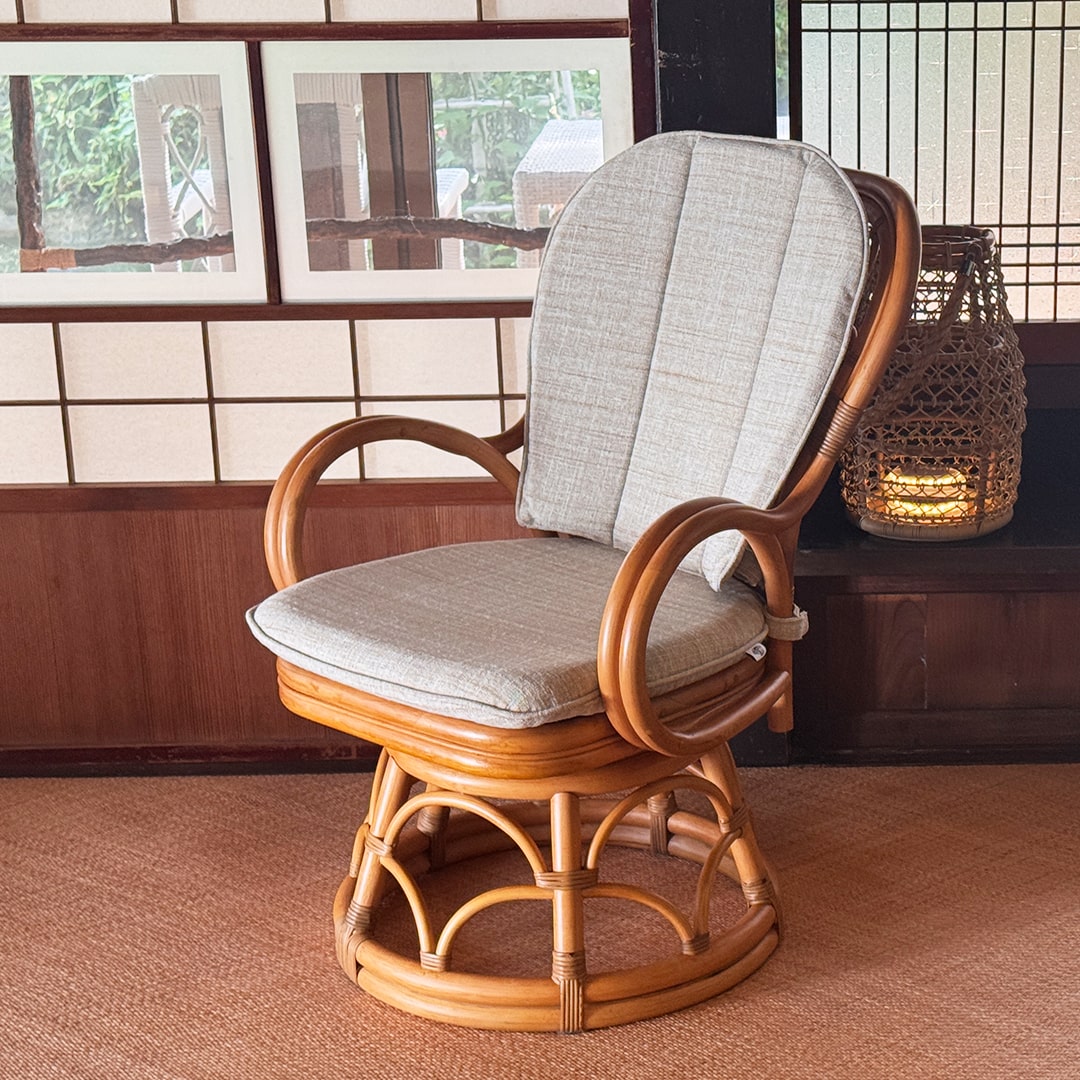 ラタンの曲線が美しい、コンパクトな回転ラタンチェアです。