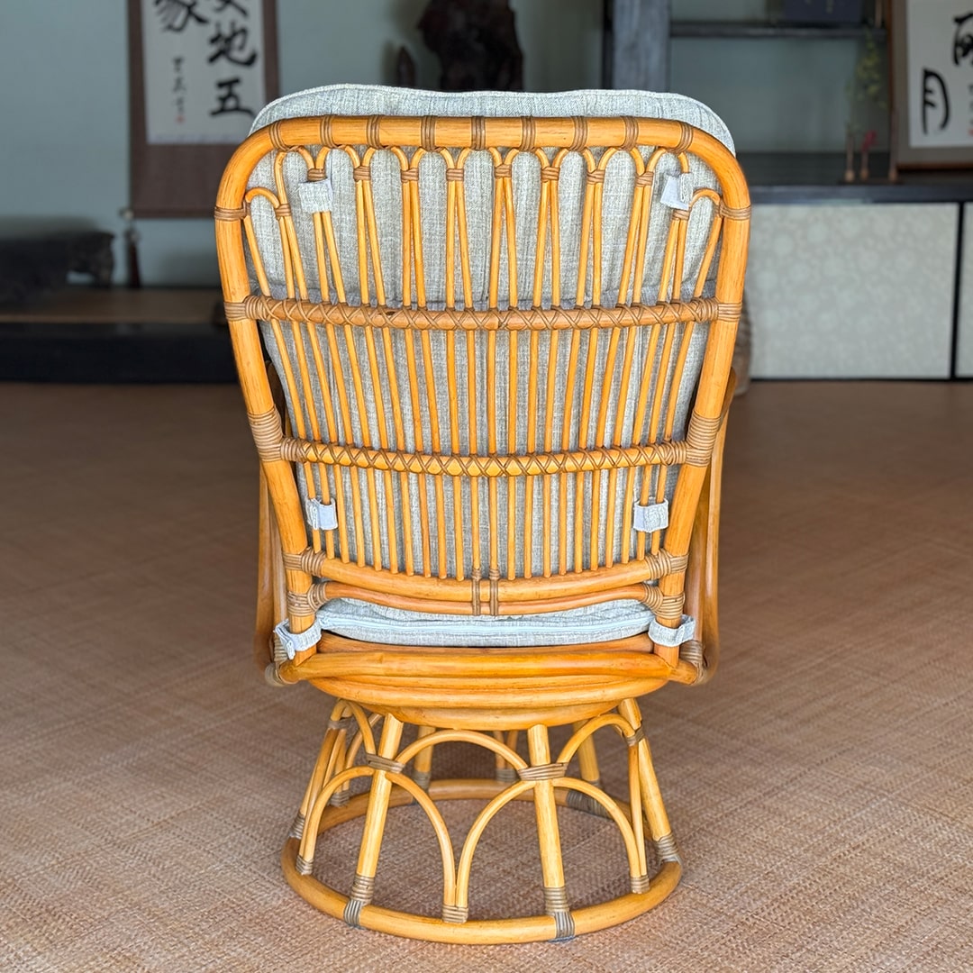 ラタンの曲線が美しい、コンパクトな回転ラタンチェアです。