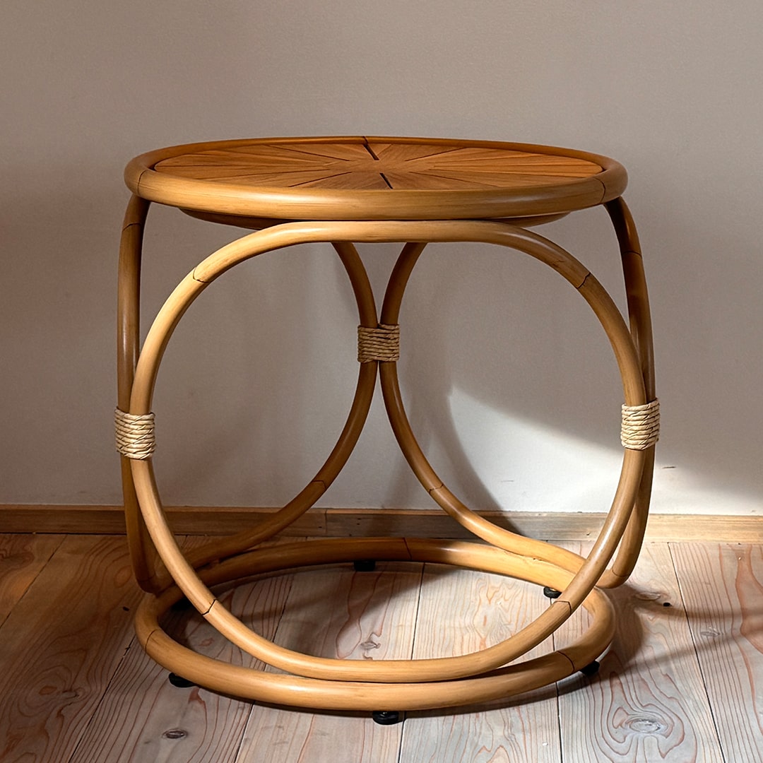 チェアやベッドと合わせて、サイドテーブルとして使いやすいラタンテーブルです。