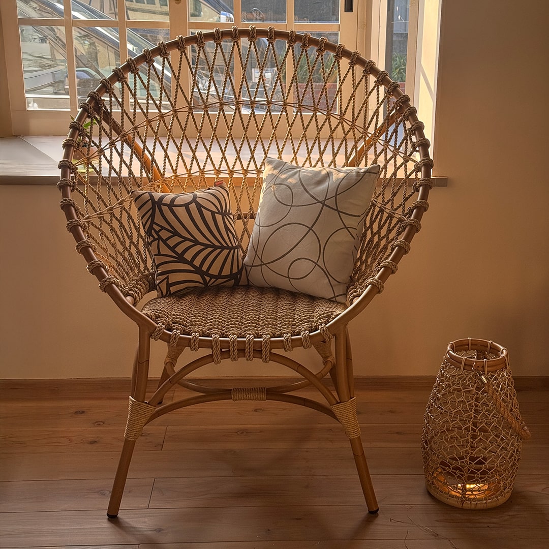 - フレーム:アルミニウム、編み:高密度ポリエチレンロープ