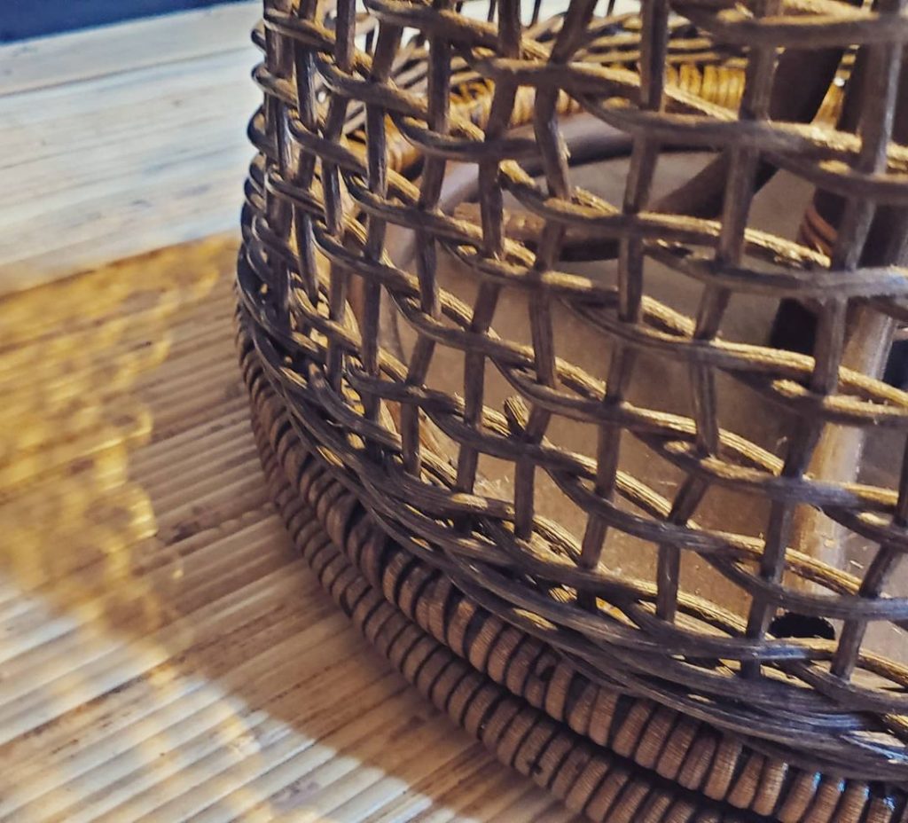 籐の編み込みが光をやさしく生かします。