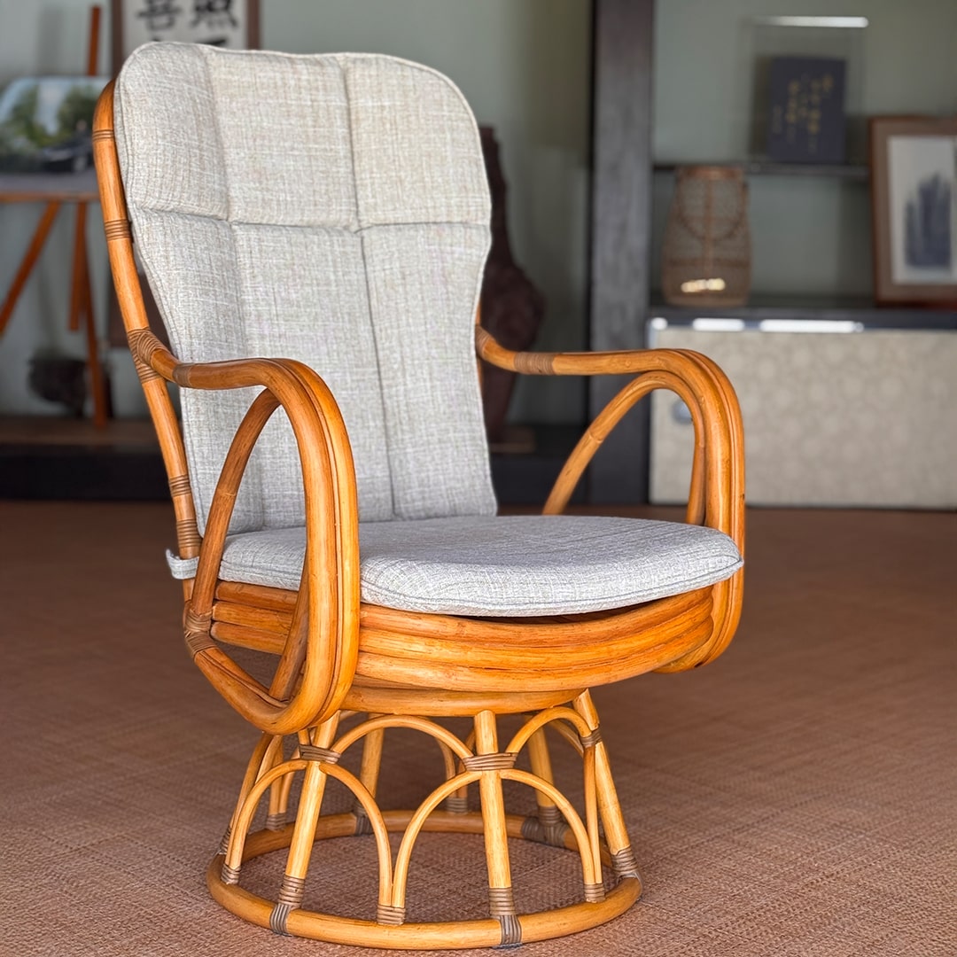 ラタンの曲線が美しい、コンパクトな回転ラタンチェアです。