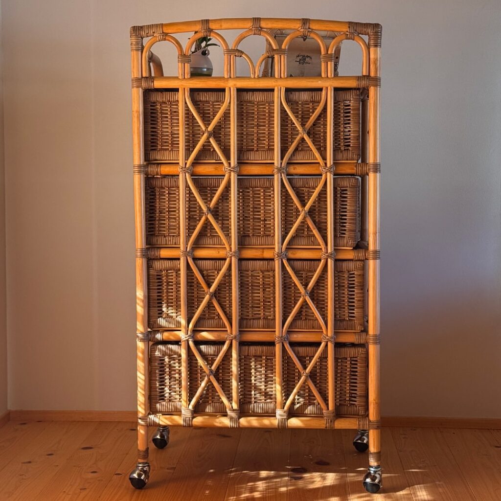 バスケットを置く場所は、丸籐の「すのこ」構造。