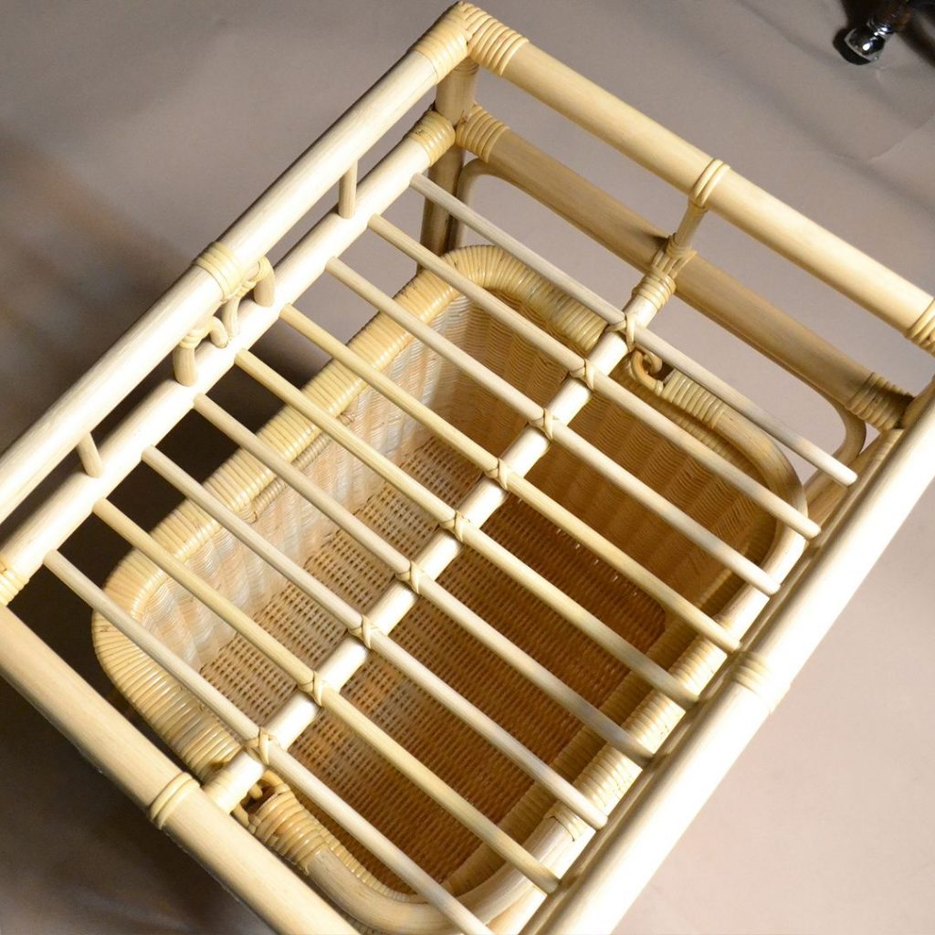 バスケットを置く場所は、丸籐の「すのこ」構造。