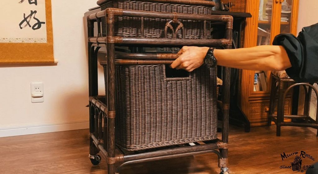 バスケットを置く場所は、丸籐の「すのこ」構造。