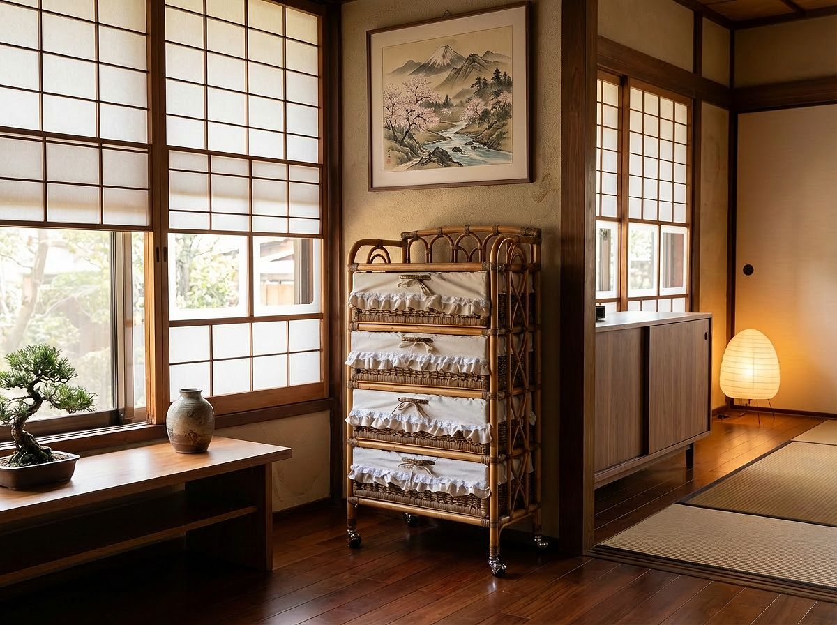 国産フリル付・ラタンランドリー