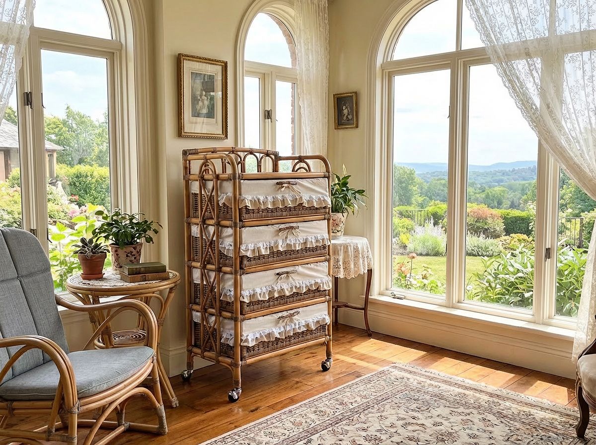 フリルがついて、可愛く仕上がったラタンランドリーです。