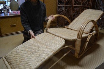 肉厚の手引きピールで丹念に編みこんだ職人手作りの味わいあるリクライニングチェア。