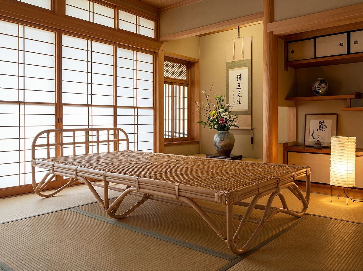 軽量な籐ベッド