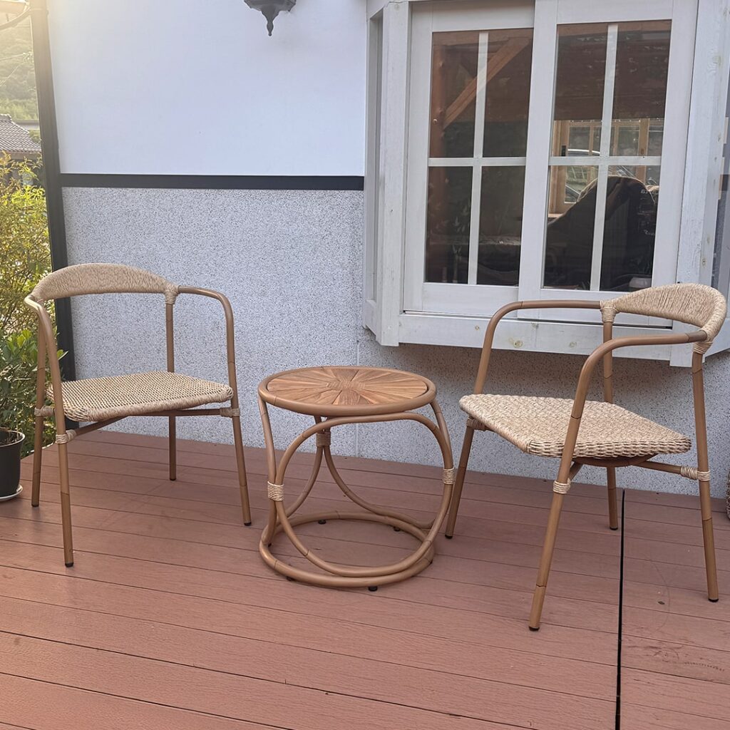 | 素材 | フレーム:アルミニウム テーブルトップ:チーク材 編み:高密度ポリエチレンロープ |