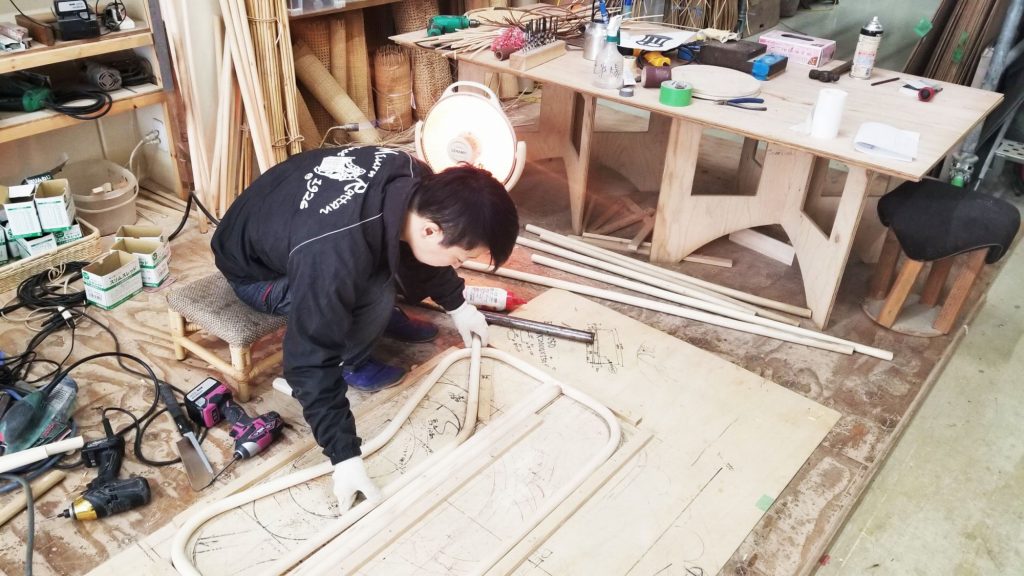 その椅子は広島の工房で職人の手によって製作されます。