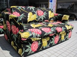 カウチの修理のご依頼を承りました。フレームも修理し、お客様持ち込みの布地でのクッション張り替えです。イメージがガラッと変わりました。