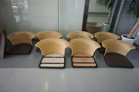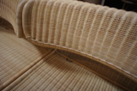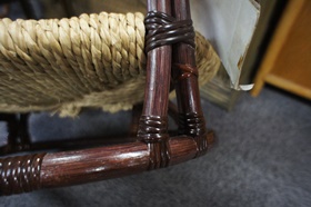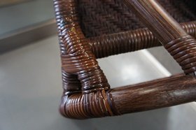 今では、体の一部のようで、自分の動き方で座椅子の調子がわかるそうです。良質の座椅子には床に接する部分に、床を傷めないように「すり」といって、1cmくらいの籐を取り付けてあります。今回の修理品にはついていませんでしたので、取り付けました。